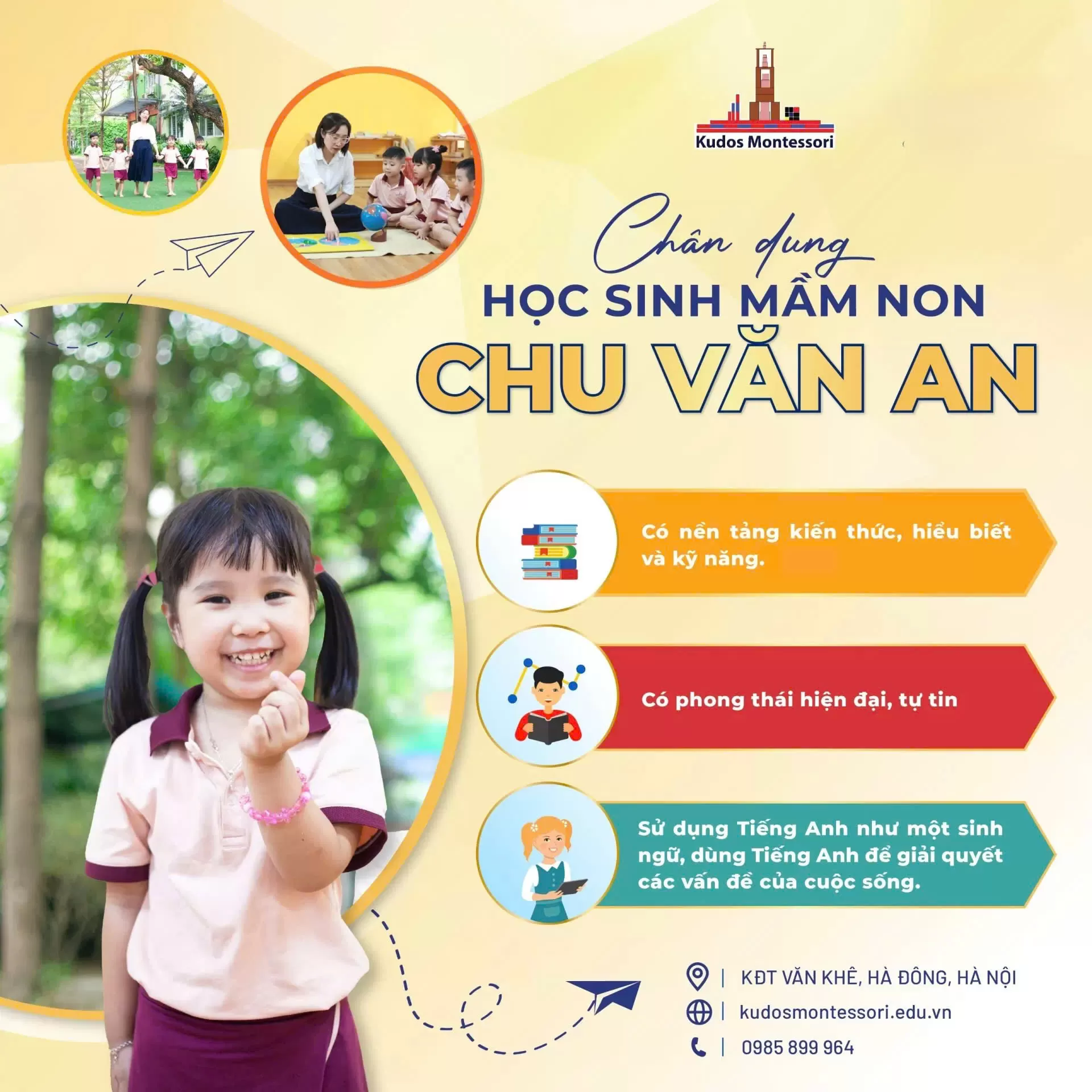 Mầm non Chu Văn An tích hợp Chương trình xây dựng dựa trên nền tảng triết lý, khung chuẩn Montessori và Cambridge để hướng tới mục tiêu tạo nên chân dung học sinh gồm 03 đặc điểm cơ bản:
