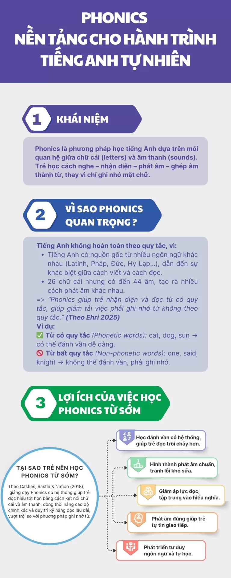 Điều này khiến nhiều trẻ phải học bằng cách ghi nhớ máy móc thay vì hiểu bản chất của âm, dần hình thành cảm giác “học tiếng Anh là học thuộc” và đánh mất niềm hứng khởi với ngôn ngữ.