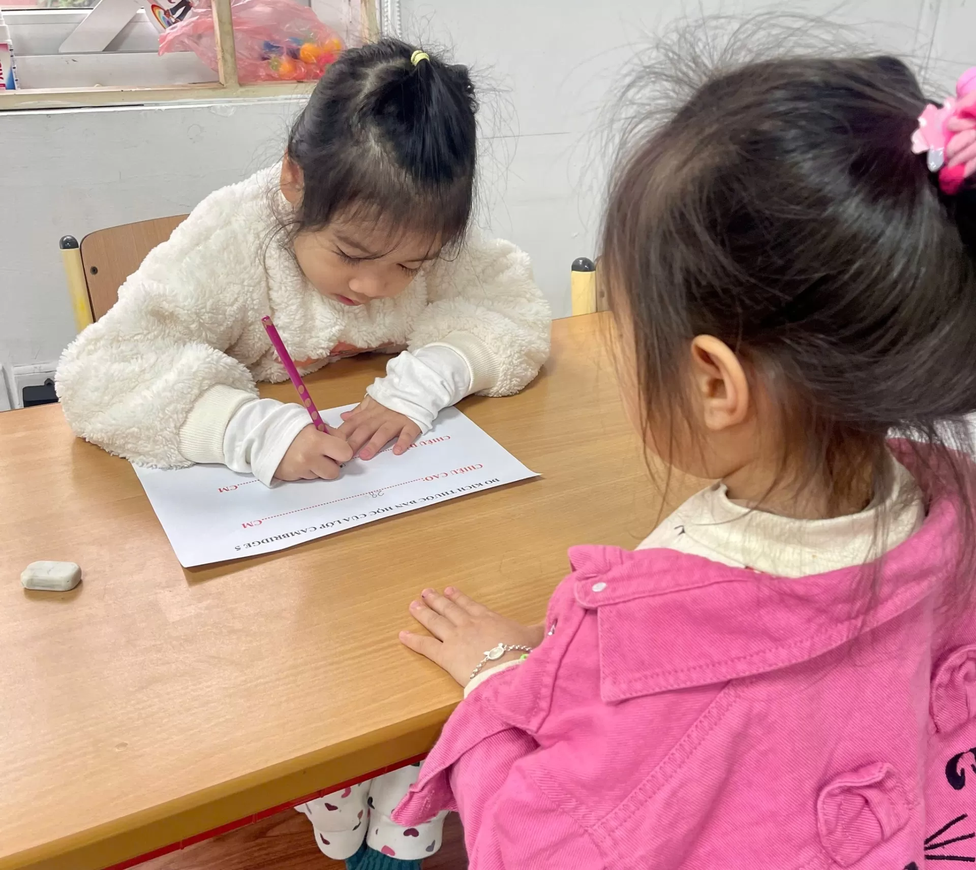 Hôm nay, lớp Cambridge 5 đã biến thành một "phòng thí nghiệm Toán học" sinh động, nơi những vật dụng quen thuộc như bàn, kệ sách hay thước dây trở thành công cụ học tập đầy hứng thú. Với phương châm "Học bằng trải nghiệm – Hiểu bằng hành động", các bé được thỏa sức khám phá thế giới đo lường qua những hoạt động thực tế.