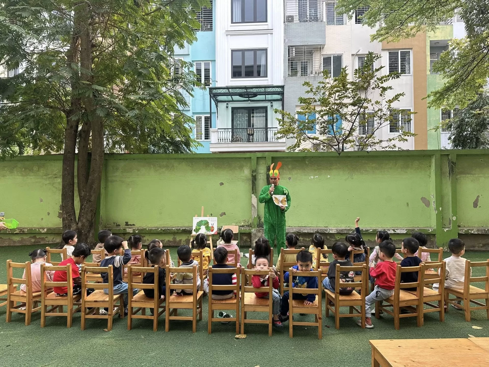 Chương trình còn mang đến cơ hội tuyệt vời để trẻ khám phá thế giới tự nhiên, thể hiện óc sáng tạo thông qua các hoạt động nghệ thuật từ vật liệu tái chế, đồng thời hiểu thêm về ý nghĩa của việc bảo vệ môi trường. Những trải nghiệm trực quan này giúp trẻ tiếp thu kiến thức một cách dễ dàng và đầy hứng thú.