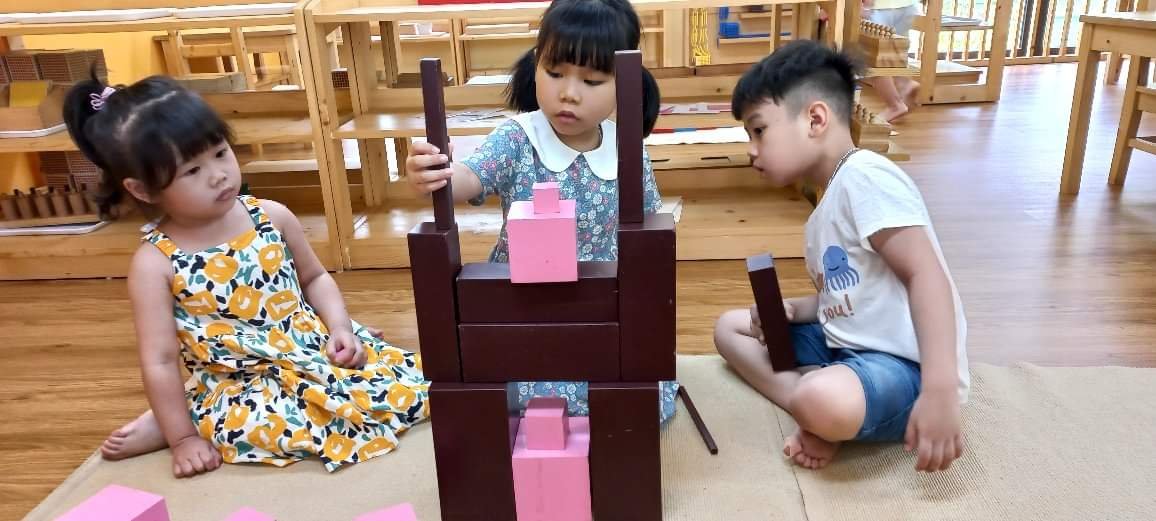 Kết hợp thang nâu tháp hồng: Các con được tìm hiểu về trật tự và trình tự để có khái niệm số tự nhiên từ 1 đến 10.