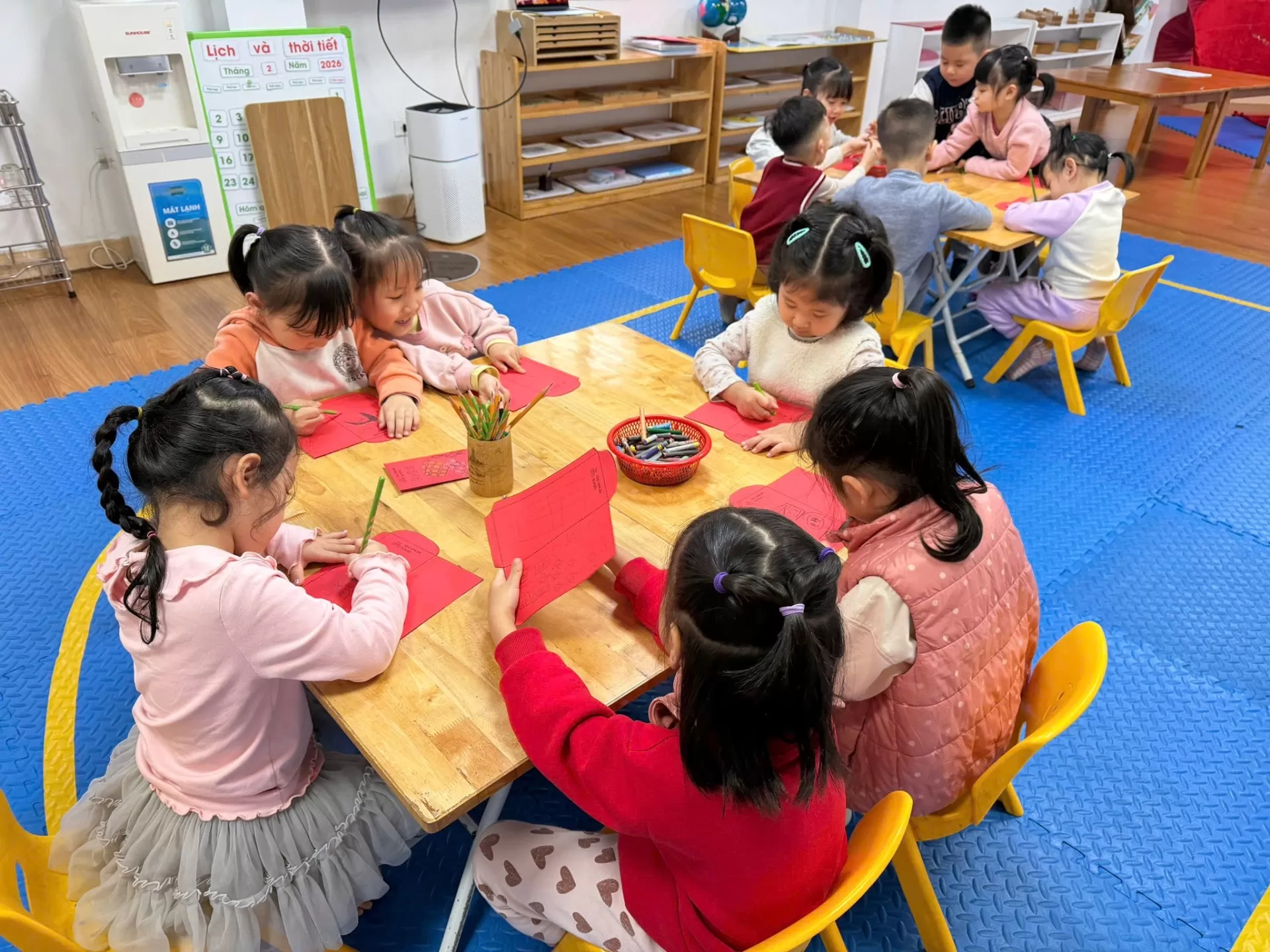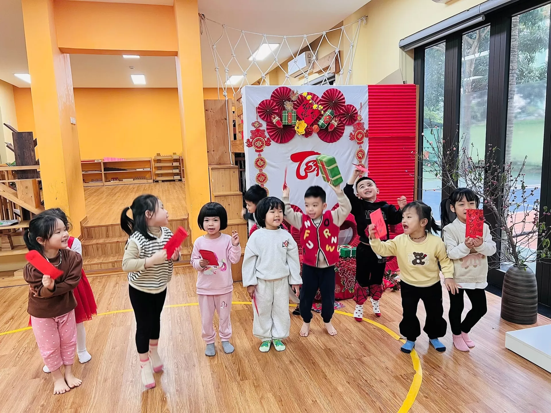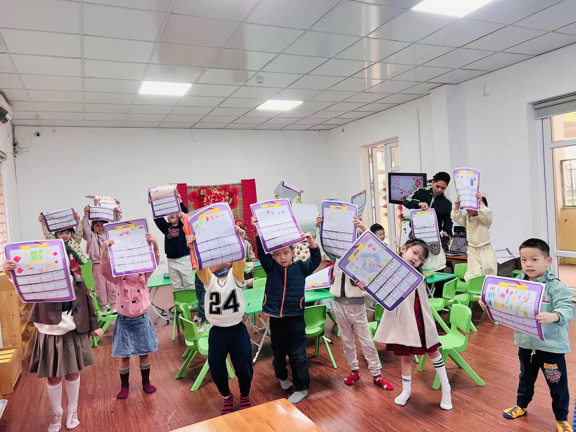 Trong tuần học cuối cùng trước kỳ nghỉ, giờ tiếng Anh tại Chu Văn An đã trở thành một “Tết Workshop” rực rỡ sắc màu. Các em học sinh được tự tay vẽ tranh hoa mai – hoa đào, trang trí bao lì xì với những lời chúc giản dị như “Happy New Year!”, và sáng tạo những tấm lịch Tết mang dấu ấn riêng.