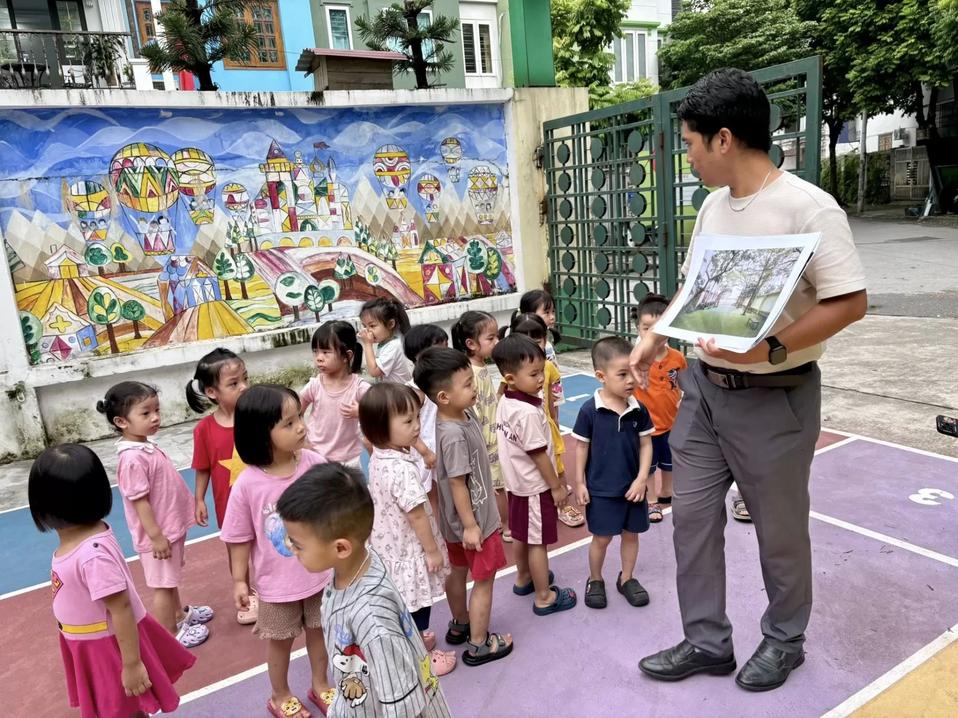 Chúng tôi để trẻ bước ra ngoài lớp học – nhìn, nghe, chạm và gọi tên thế giới bằng ngôn ngữ thứ hai.